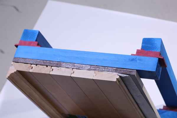 六、安放下龙骨:下龙骨按照400mm中心间距安放在橡胶找平垫上,两条龙骨接头端部应安放在橡胶垫上,未在橡胶垫上的两条龙骨的结合部的下端应增加木垫块进行加固。
