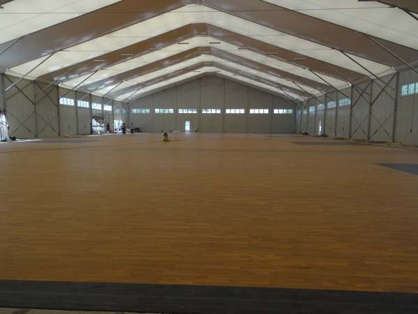 糟糕的情况就是实木运动地板出现浸水的现象,毋庸置疑,水是所有木材的克星,应尽量杜绝实木运动地板与水的亲密接触,养成定期检查篮球馆内管道设施的良好习惯,防止管道意外漏水浸泡实木运动地板的情况发生。当出现意外洒落的水渍时,一定不能犯懒要及时清除。同时,雨季的时候也要注意是否出现漏水的情况,定期检查门窗的密闭性,不要让雨水在不经意间对实木运动地板造成不可逆的伤害。实木运动地板需要良好的透气性,因而应避免物品堆放在其上,尤其是覆盖上透气性不佳的物品。当这种情况出现应迅速做出反应将地板表面的水清理干净,然后要将门窗关好,空调调低温度,而不是门窗大开。